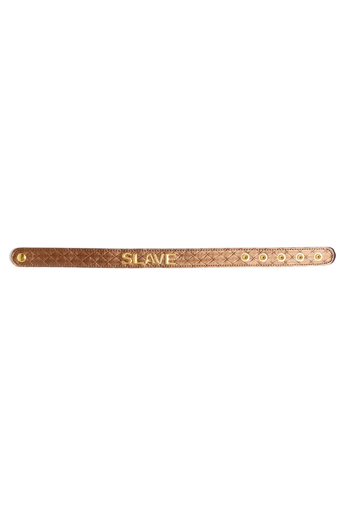 Add some color to your BDSM collection with the new ‘Bronze’ selection of whips, masks, and accessories! This X-Play ‘SLAVE’ Bronze BDSM Collar features a subjection collar with raised lettering ‘SLAVE’ over a bronze quilted collar. Pair with other bronze BDSM accessories from our collection!