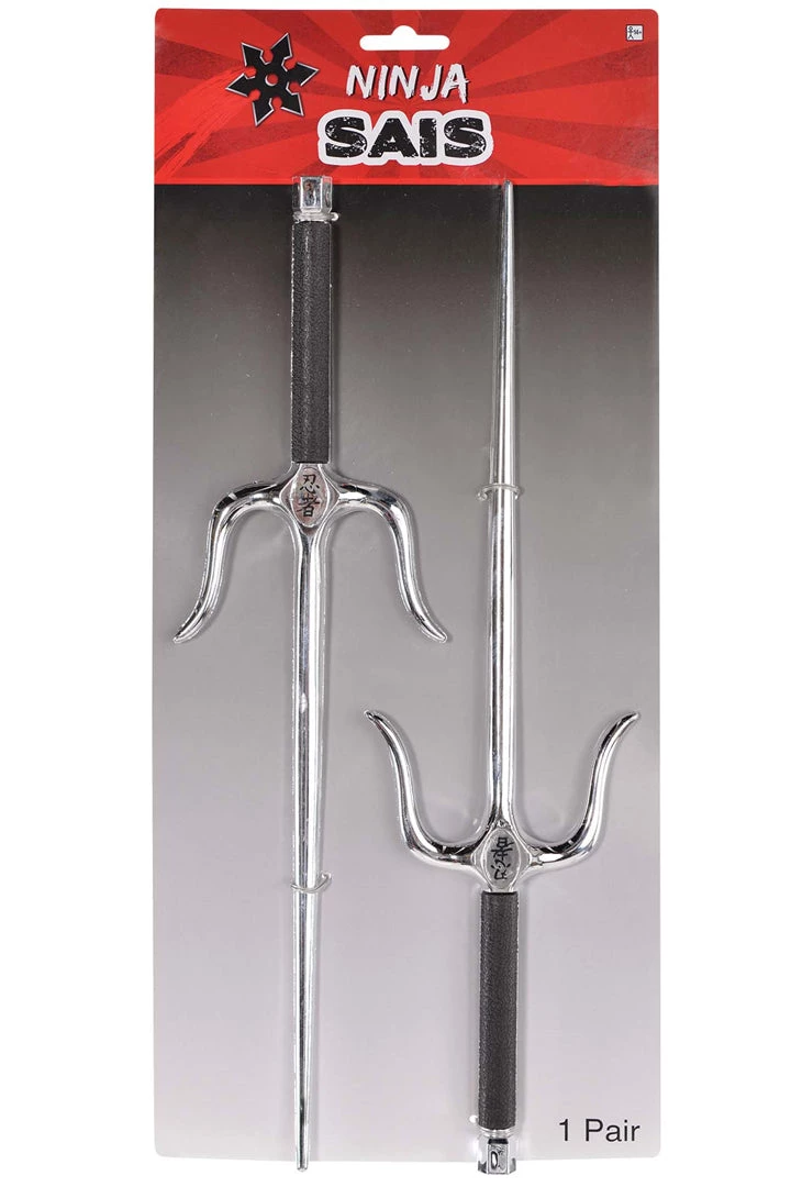 Make sure your ninja is armed and ready with these Ninja Sais Costume Props for your DIY ninja costume! This pack includes a pair of plastic ninja tridents.