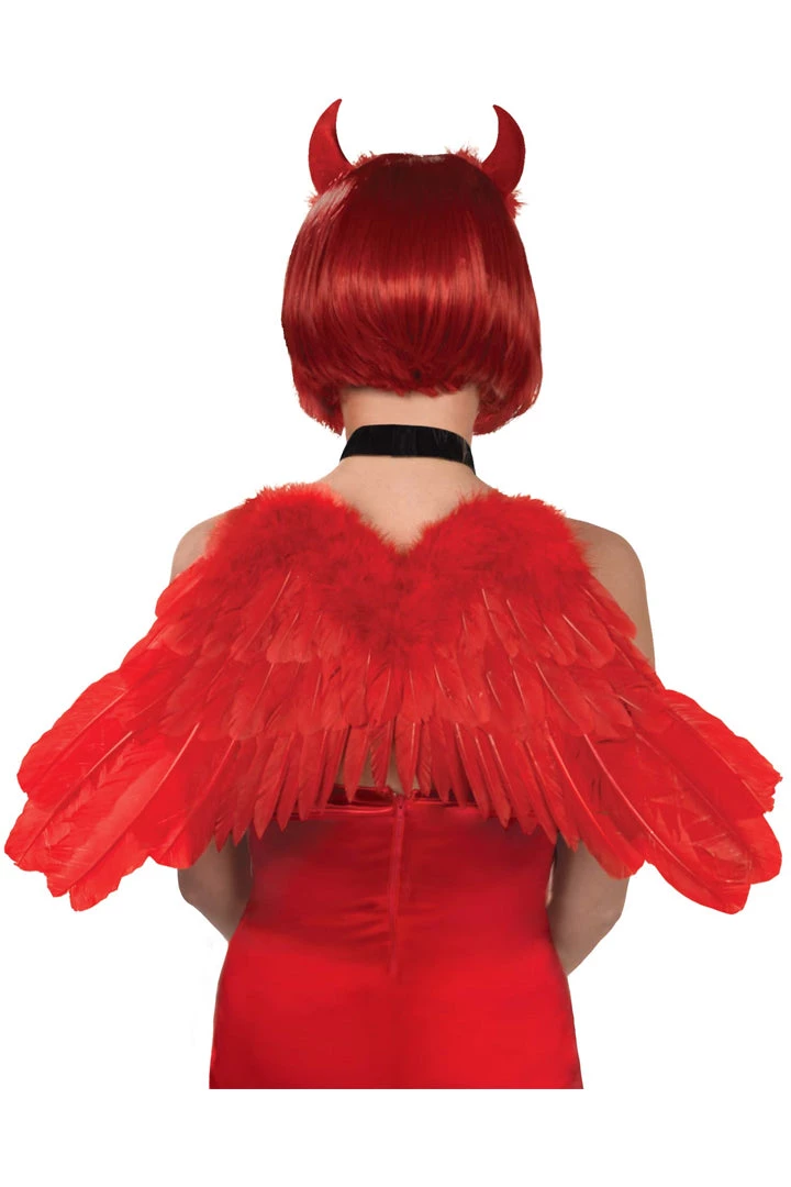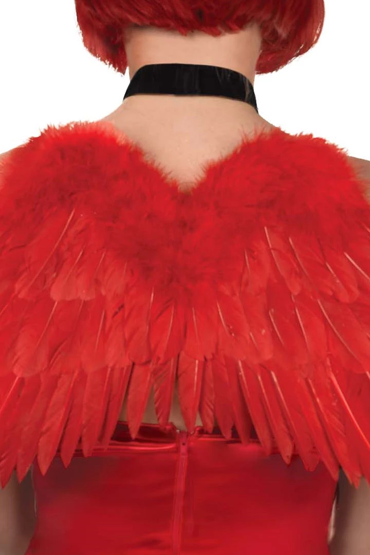 - Includes: Pair of red faux feather wings