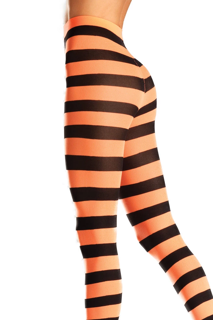 These stripes have more fun featuring this fun pair of Black & Orange Wide Striped Pantyhose that include 1 pantyhose with wide black and neon orange horizontal stripes and stretch elastic waistband.