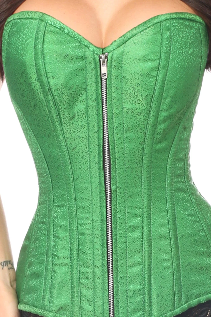 Add a bit of spice in your life with this Emerald Brocade Steel Boned Corset when you need that instant confidence. This full bust corset made of sophisticated deep green brocade fabric. Featuring a high-quality front metal zipper closure and durable steel bones, it is a must-have for your lingerie wardrobe. It is equipped with thick cords for more efficient waist cinching. Hand Wash Only.