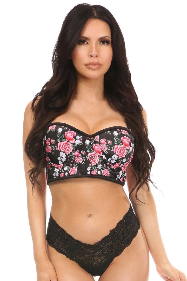 Lavish Pink Floral Underwire Short Bustier