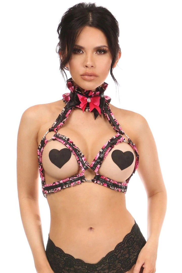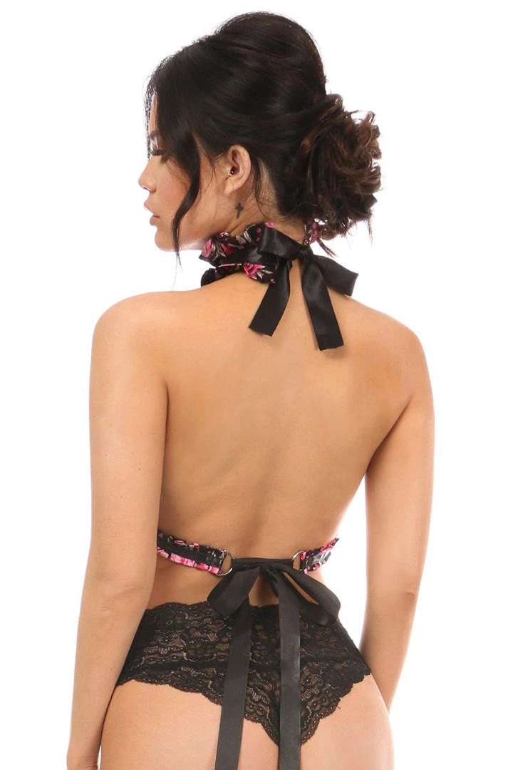 Kitten Collection Pink Floral Satin Triangle Top Body Harness