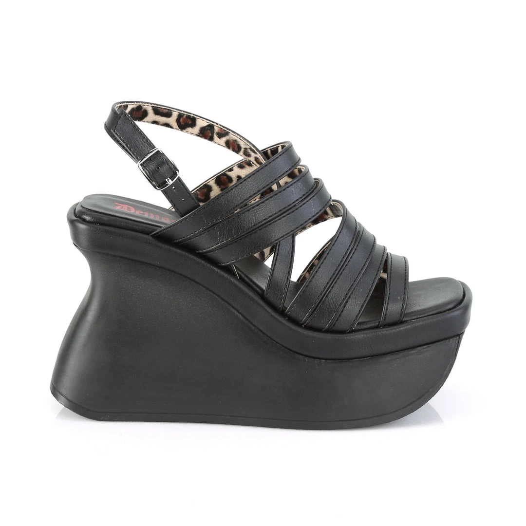 4 1/2″ (114mm) Wedge Strappy Platform Sandal Featuring Asymmetrical Slingback Straps
