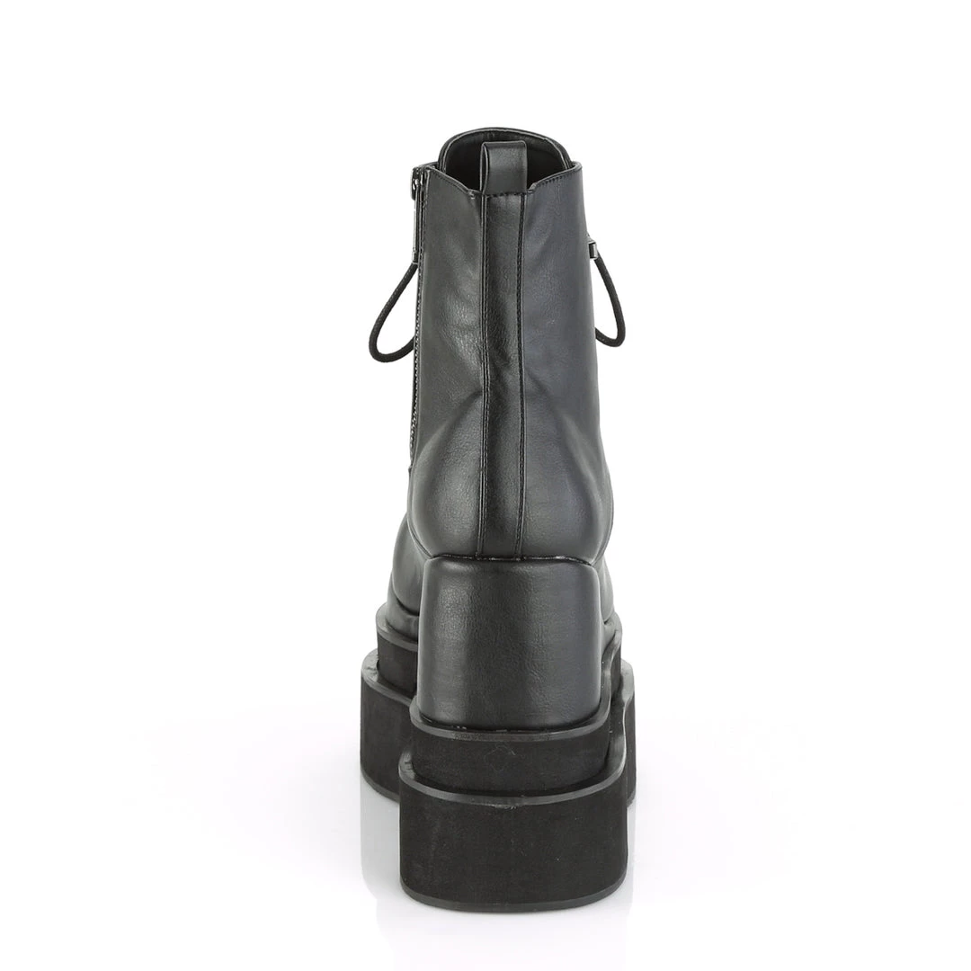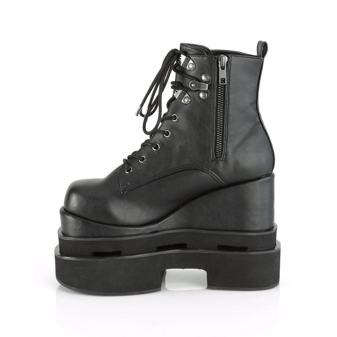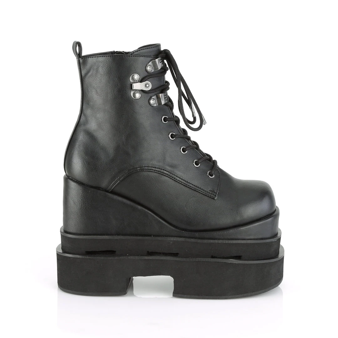 5″ (127mm) Triple Tiered Wedge Cutout Platform Lace-Up Ankle Boot, Side Zip Closure