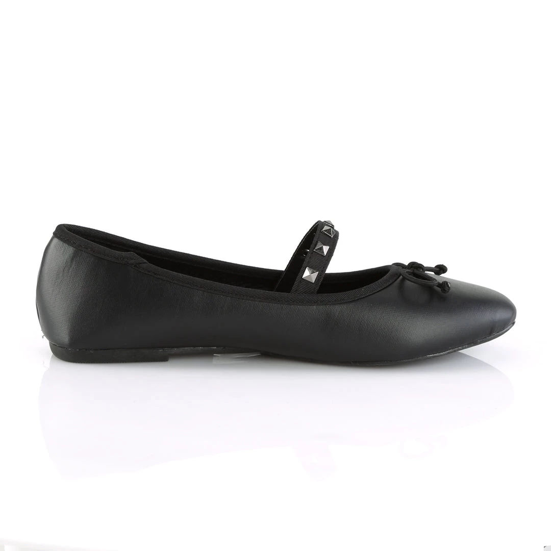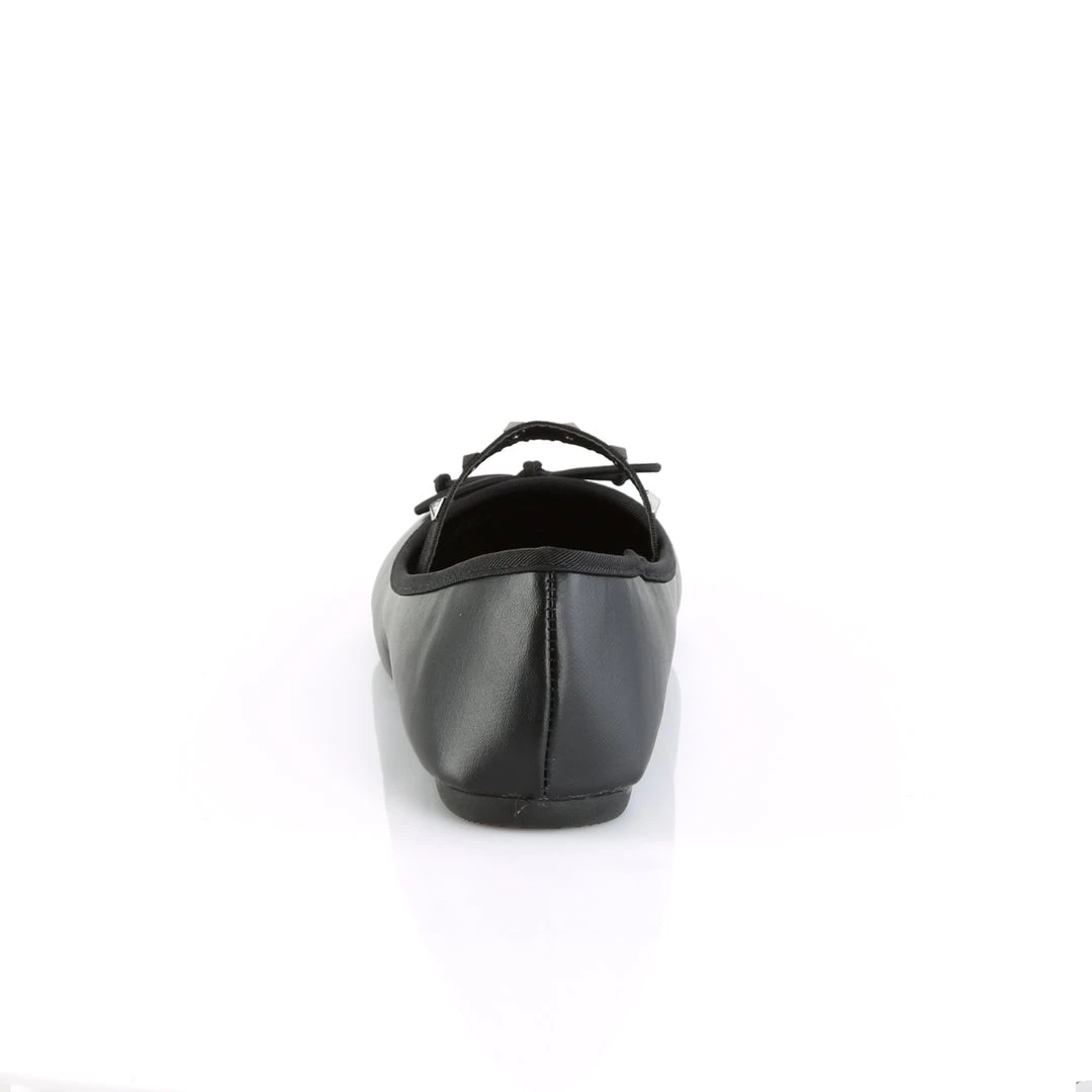 Round Toe Mary Jane Ballet Flats with Stud Detailing on Strap & Bow on Toe