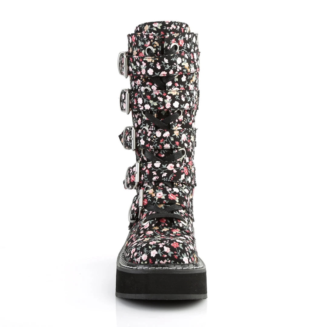 2″ (51mm) Platform Lace/Up Front Mid-Calf Boot Featuring Buckle Straps, Back Metal Zip Closure