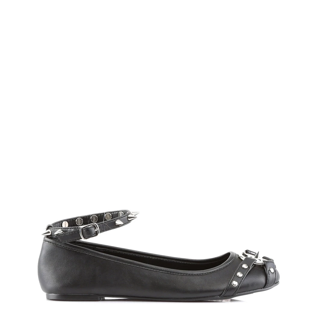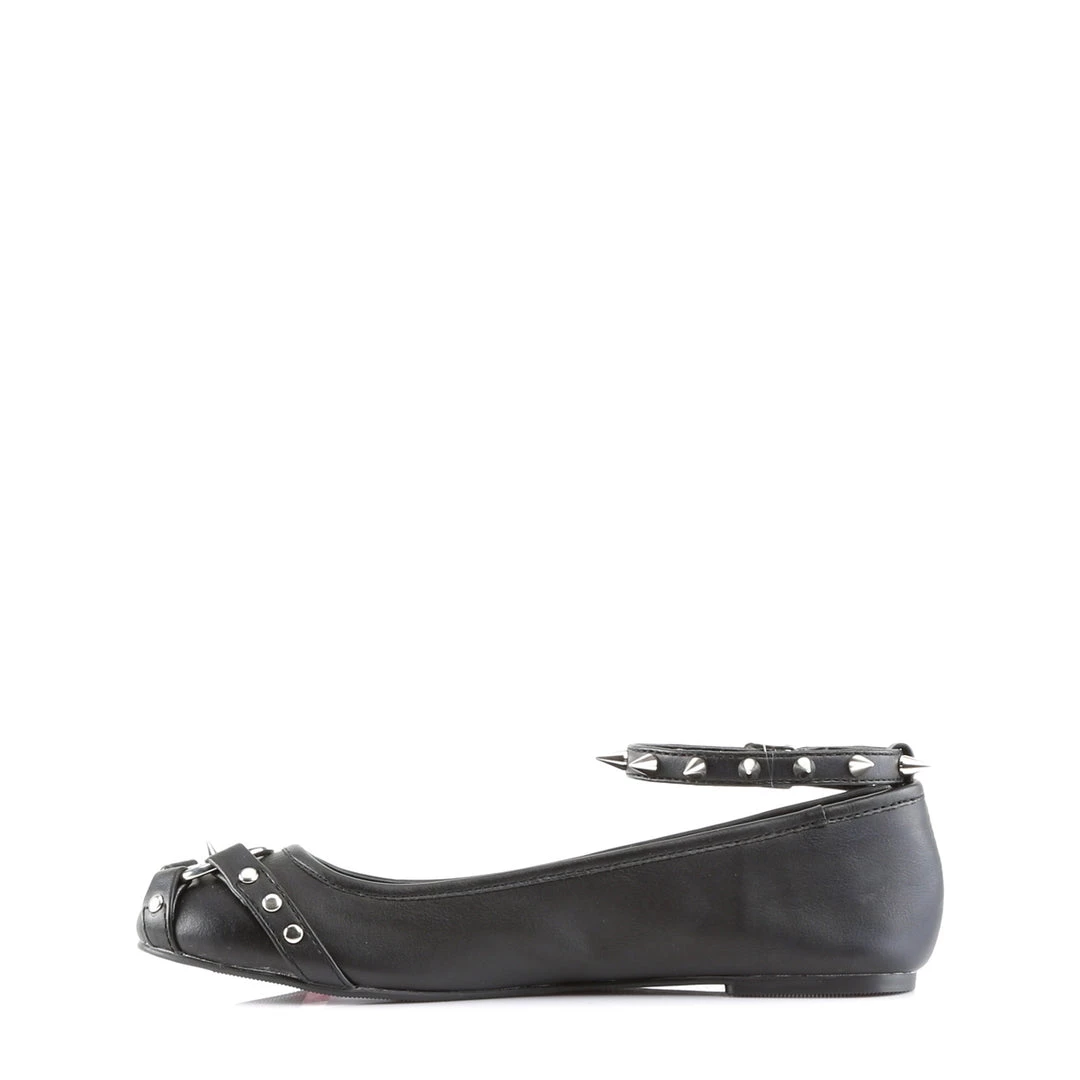 Ankle Strap Flat Featuring Studded Straps and Pentagram Ornament on Vamp and Buckle & Spikes Detail
