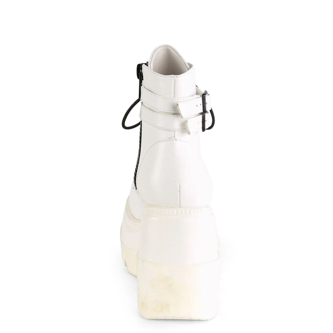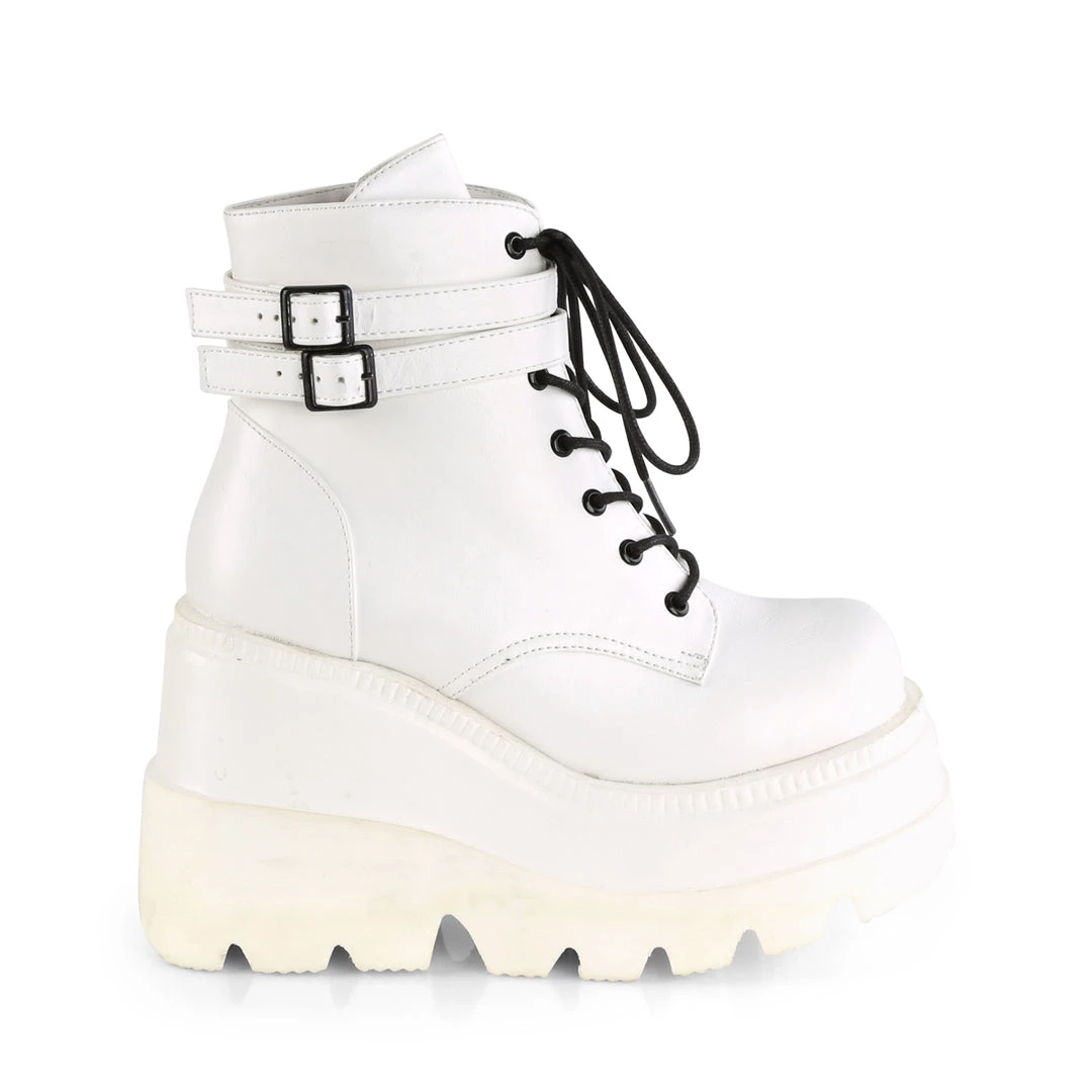 4 1/2″ (114mm) Wedge Platform Lace-Up Front Ankle Boot with Double Buckled Ankle Straps, Inside Zip Closure