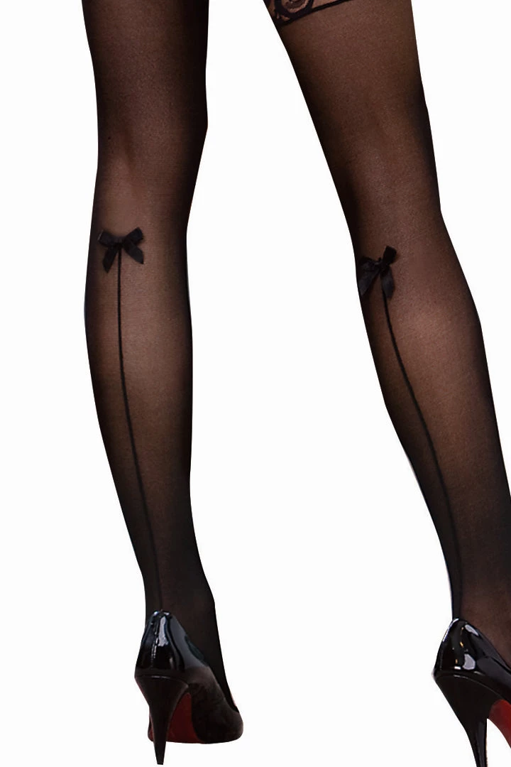 A touch of subtlety, these Black Opaque Thigh Highs with Calf Backseams feature opaque black thigh highs with lace tops, footed stockings, calf backseams, and black satin bows. The perfect accessory for your little black dress or garter lingerie, these stockings are soon to become your favorite look.
