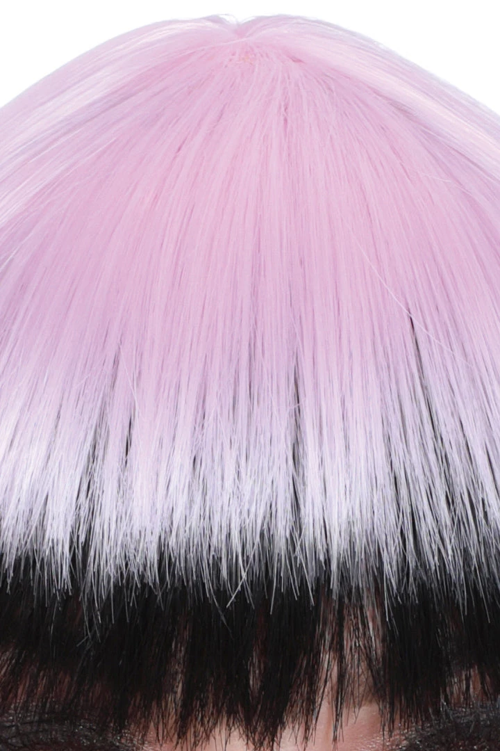 This Black & Pink Blunt Cut Mid-Length Wig creates a look made for your inner misfit diva. Features a mid-length cut with blunt cut bangs and hair with two tone pink and black. Includes adjustable straps for a secure hold. Not only does this wig come ready to wear, but it features human-like strands and an easy to maintain look.