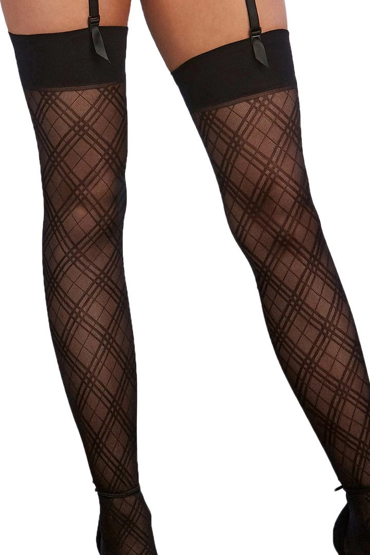 Sheer Black Plaid Thigh High Stockings. *Thong not included.