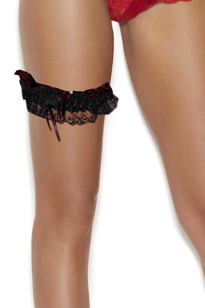 Black Satin Black Lace Leg Garter. This simple accessory is perfect for dancewear or bedroom lingerie use.