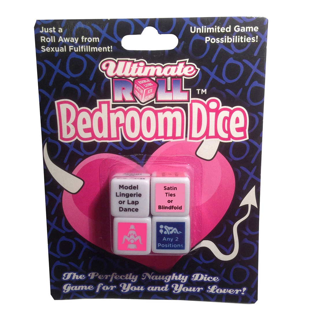 The perfectly naughty dice game for lovers! Just a roll away from sexual fulfillment! Leave sex-play up to fate with one roll of the dice! With Ultimate Roll Bedroom Dice, players can discover new and exciting ways to turn theirhome into the ultimate sexual playground. To play, decide who rolls first, then roll all four dice together. Read the directions that correspond with your roll from light to dark. There are no losers, so roll the dice and act it out!