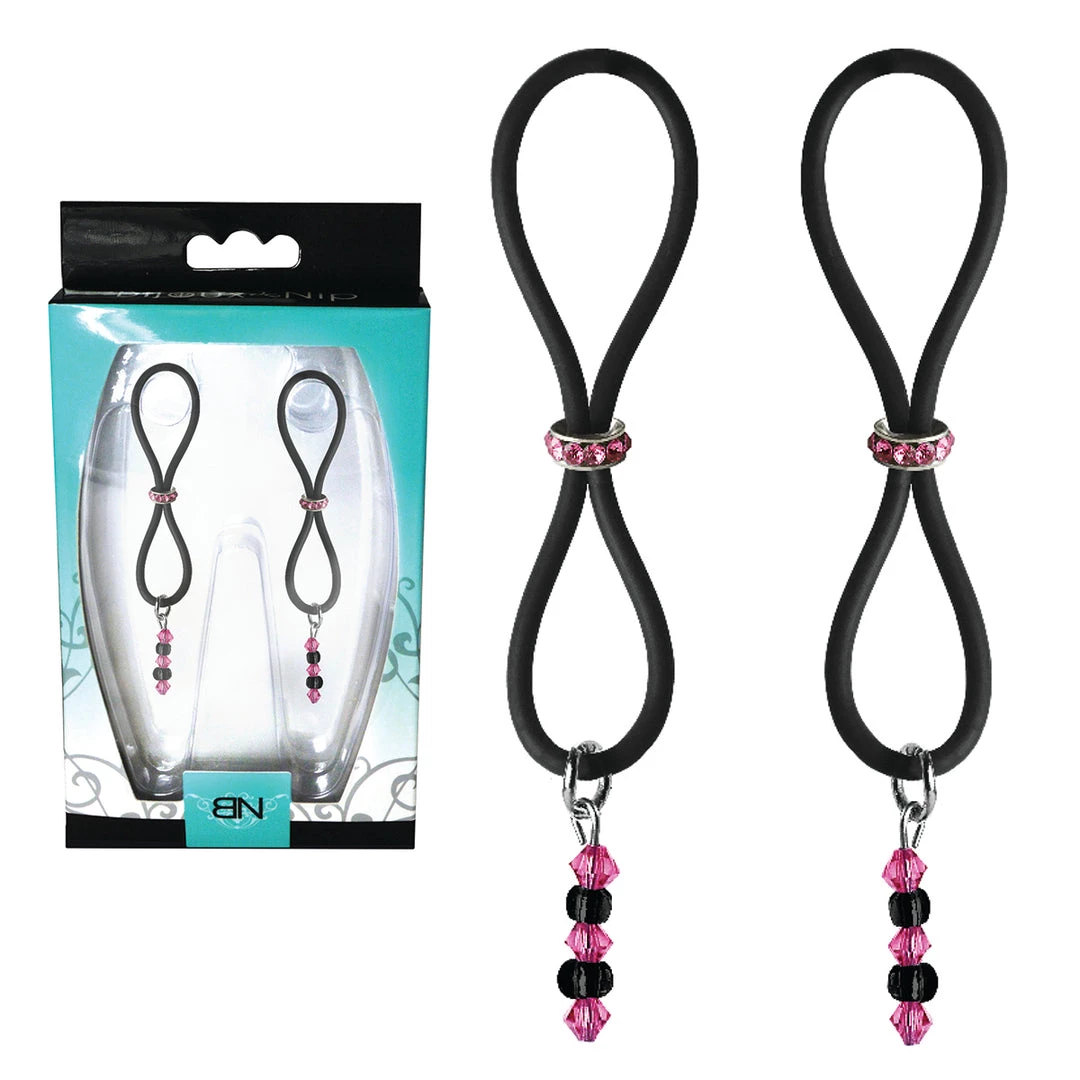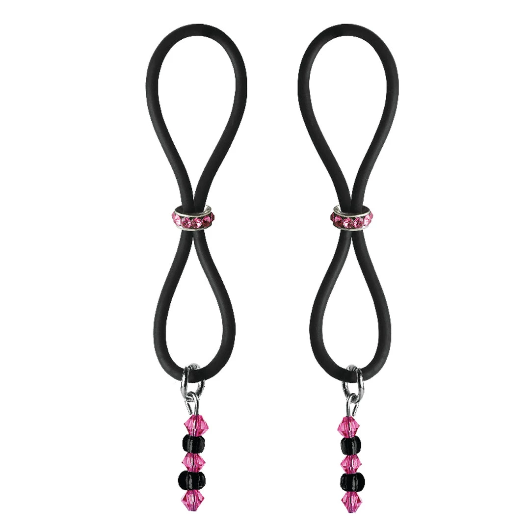 A simple and sexy way to adorn the nipples. Body safe silicone halos will tighten around the base of the nipple by sliding the bead to the desired pressure. Enjoy increased sensitivity to your nipples while looking beautiful.