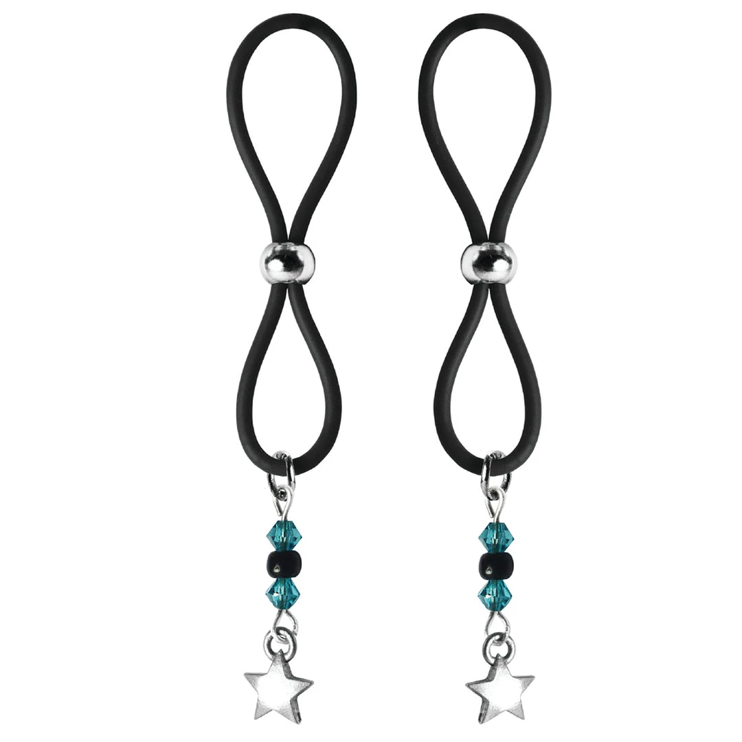 A simple and sexy way to adorn the nipples. Body safe silicone halos will tighten around the base of the nipple by sliding the bead to the desired pressure. Enjoy increased sensitivity to your nipples while looking beautiful.