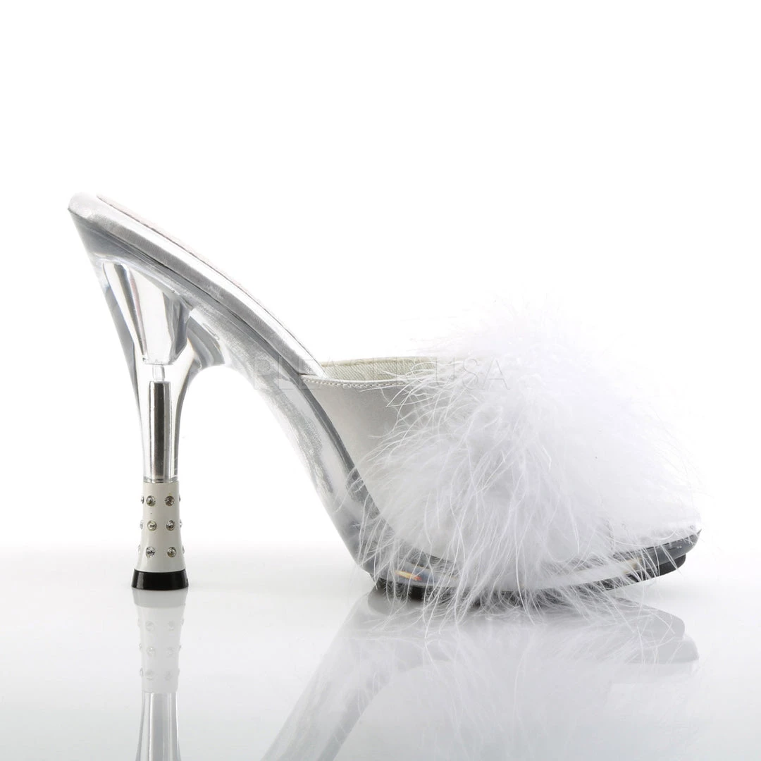 - Color: White Satin Fur/Clear