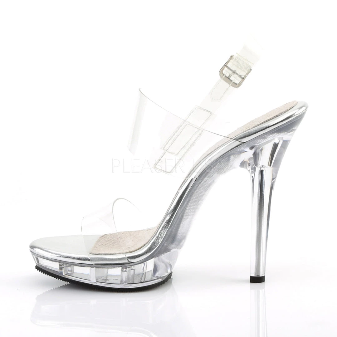 Combine comfort with fashion with these clear 5″ heels that include 3/4″ Platform Dual Band Sling Back Sandals