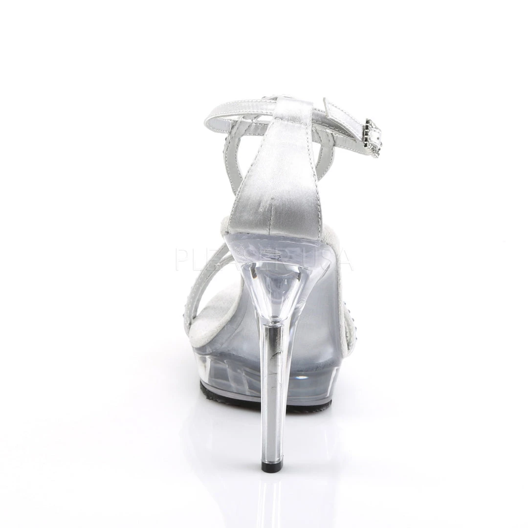 Add a touch of glam to any outfit with these 5″ heels that include 3/4″ Platform Ankle Strap Sandal Featuring rhinestone ornamentation.