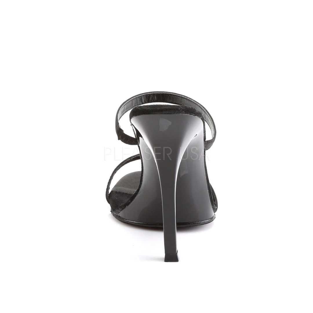 Combine fashion with comfort in these black satin 4 1/2″ Dual Spaghetti Strap Slide-On Sandals.