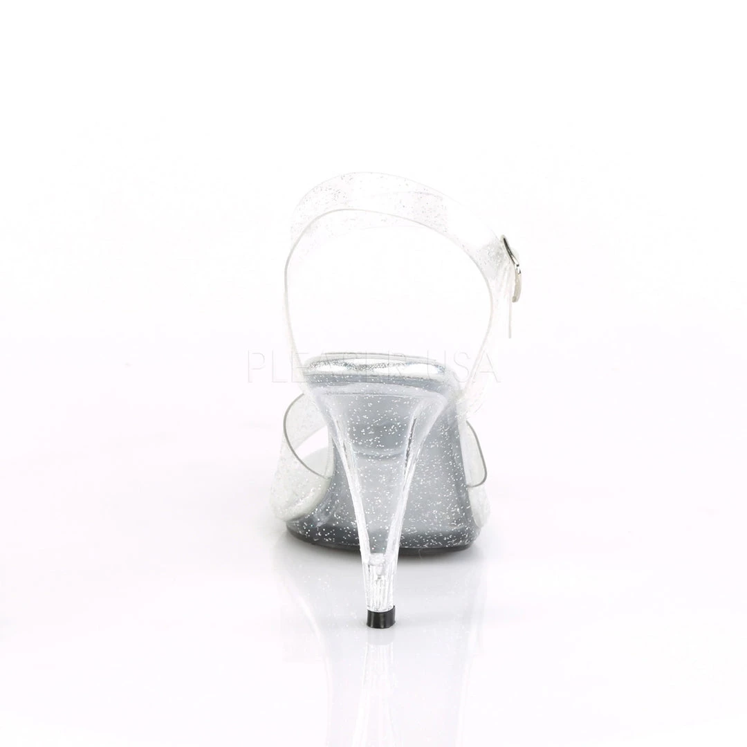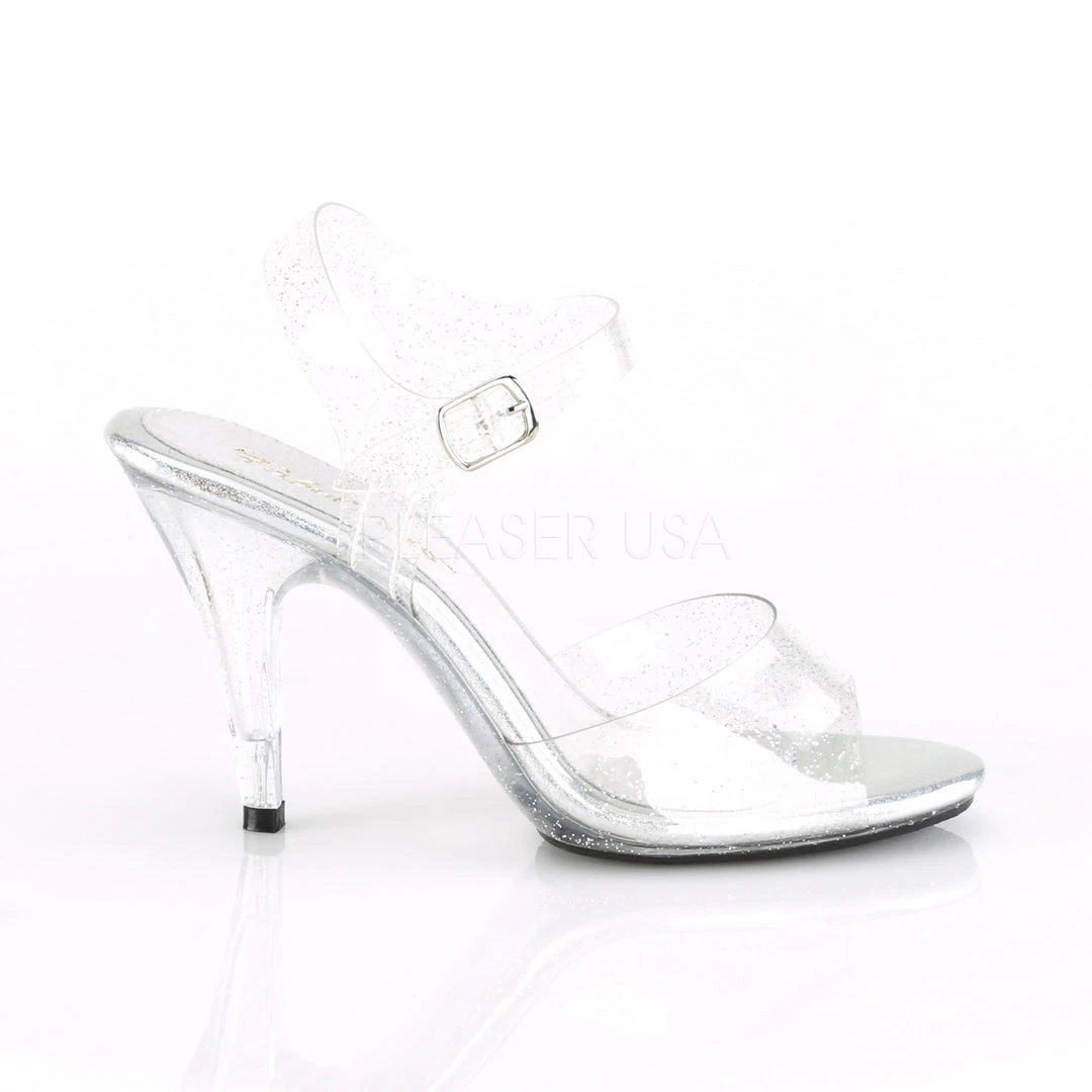 Full of glam, these 4″ Heel, 1/8″ Platform Ankle Strap Sandals feature peep toe tops and ankle straps.