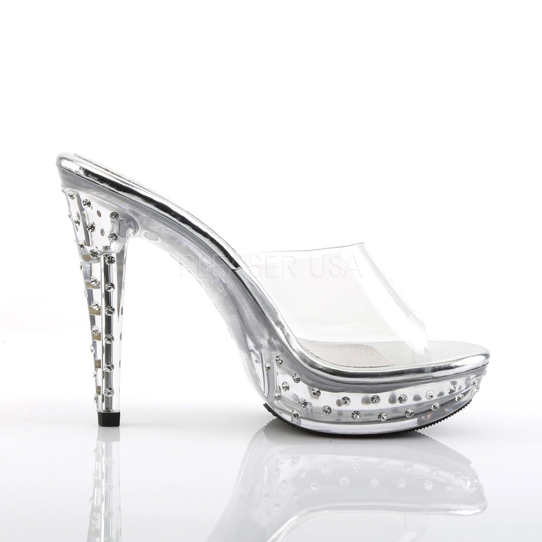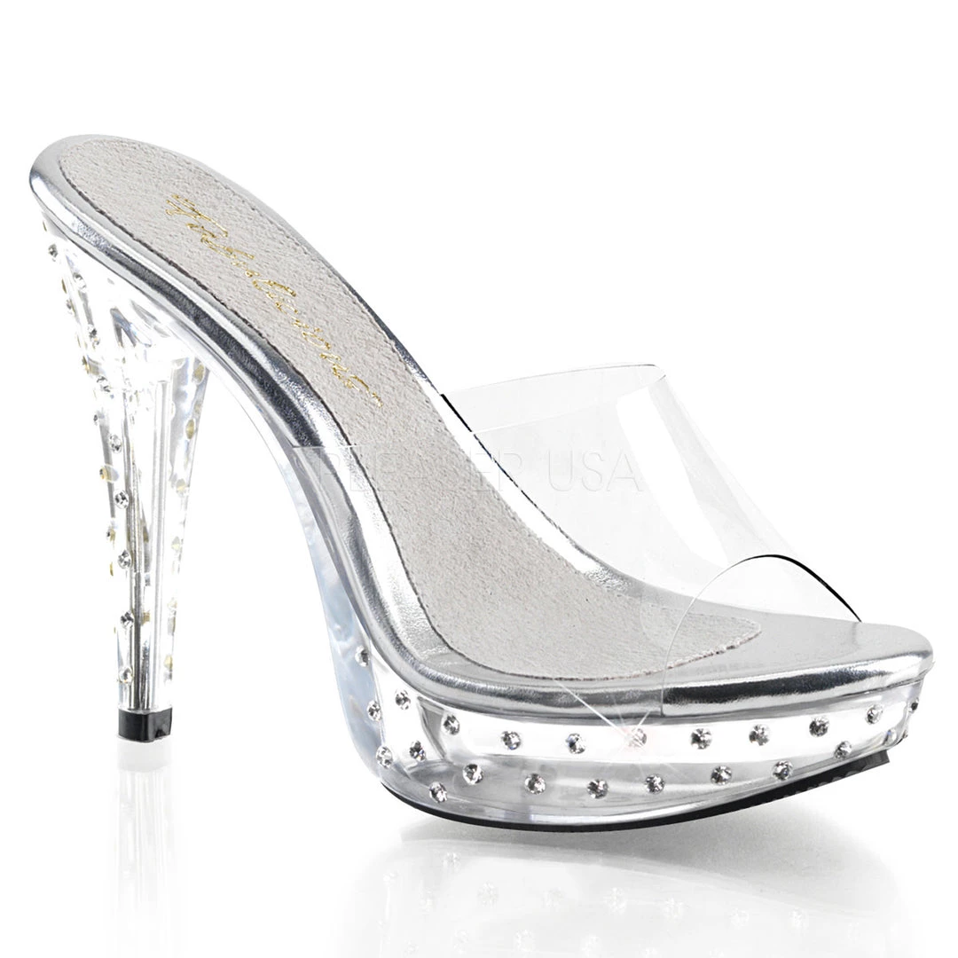 Look glamorous in these 5″ Heels that include a 1″ Rhinestone Studded Platform Slide