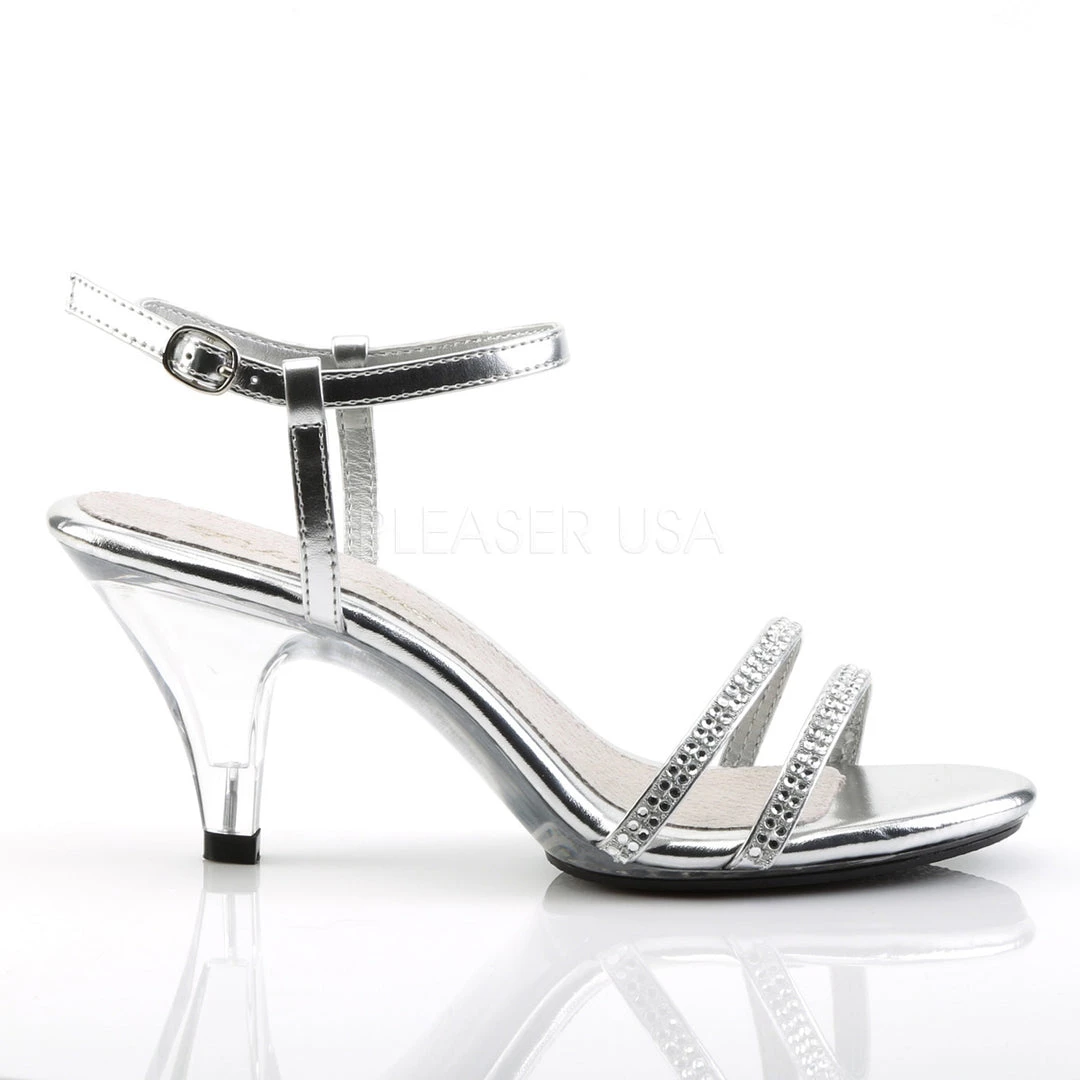 Glamorous with comfort, these 3″ Stiletto Heel Ankle Strap Mini-PF Sandal with rhinestones feature double strap tops with ankle straps.