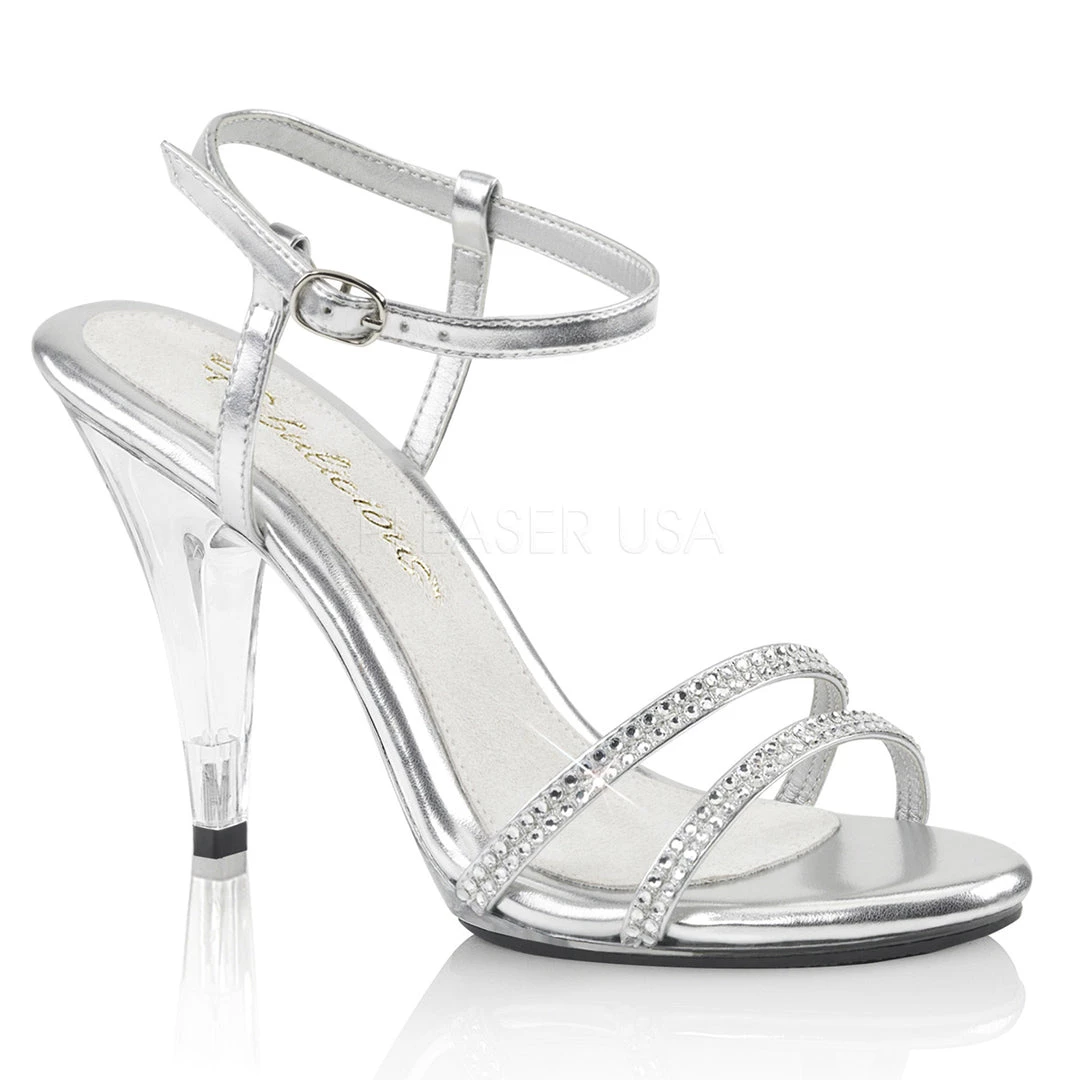 Add a touch of sparkle to your outfit with these 4″ Heel, 1/8″ Platform Strappy Ankle Strap Sandals that feature rhinestone double straps with ankle straps.