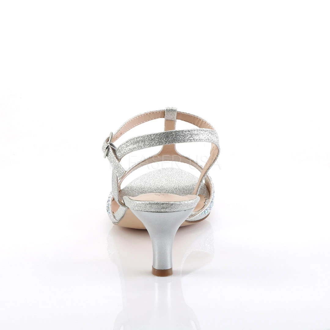 Glitter bright with these 2 1/2″ Kitten Heel, T-Strap Sandal Shimmer