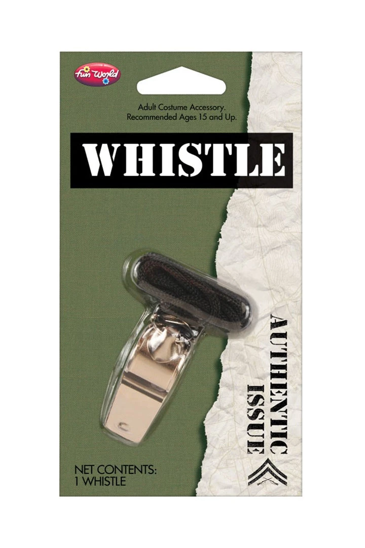 Blow the whistle with this Police Whistle Costume Accessory that features a functioning whistle for your cop costume! Includes a metal whistle with black lanyard.