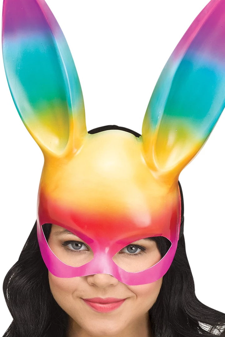 This Rainbow Ombre Bunny Mask features a hint of playful fantasy. Features a shiny material with bright rainbow colors.