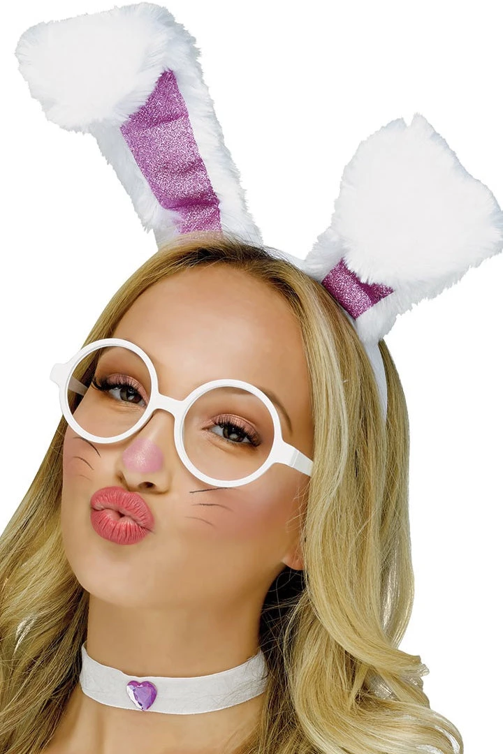 - 3 Pieces Includes: Fuzzy Bunny Ears, Oval Frames, Choker