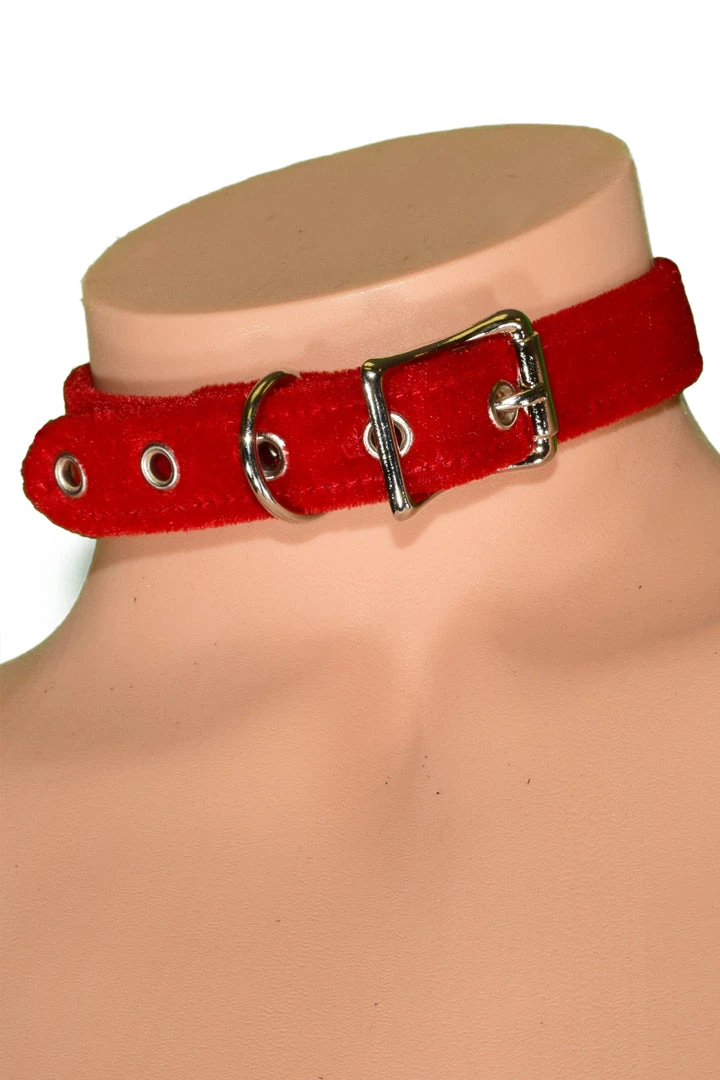 Reinforce good behavior with this Red Velvet BDSM Day Collar that features a soft red velvet 5/8″ choker with superior velvet material, 3/4″ metal o-ring, and adjustable buckle.
