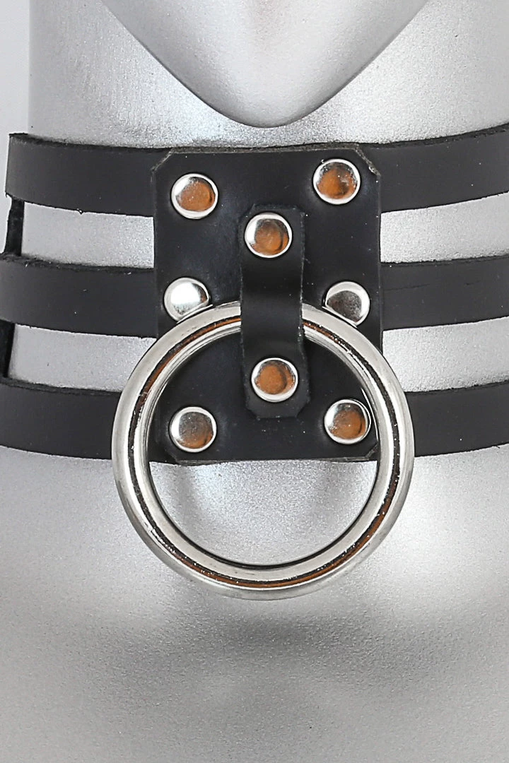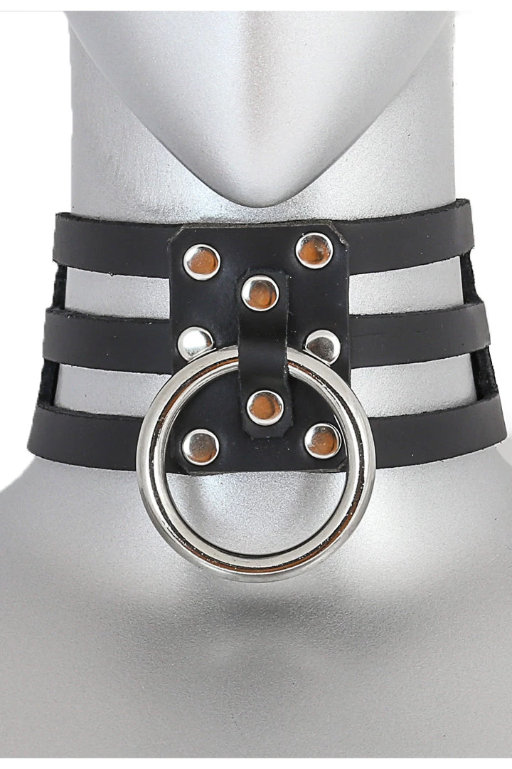 - Includes: Triple Leather Collar with Large O Ring Choker
