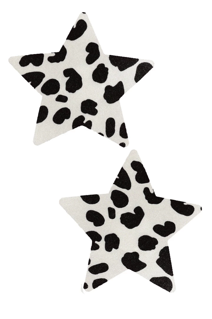 Cow Print Star Nipple Pasties. Features self adhesive tape, just peel and stick on clean, dry, oil-free skin.