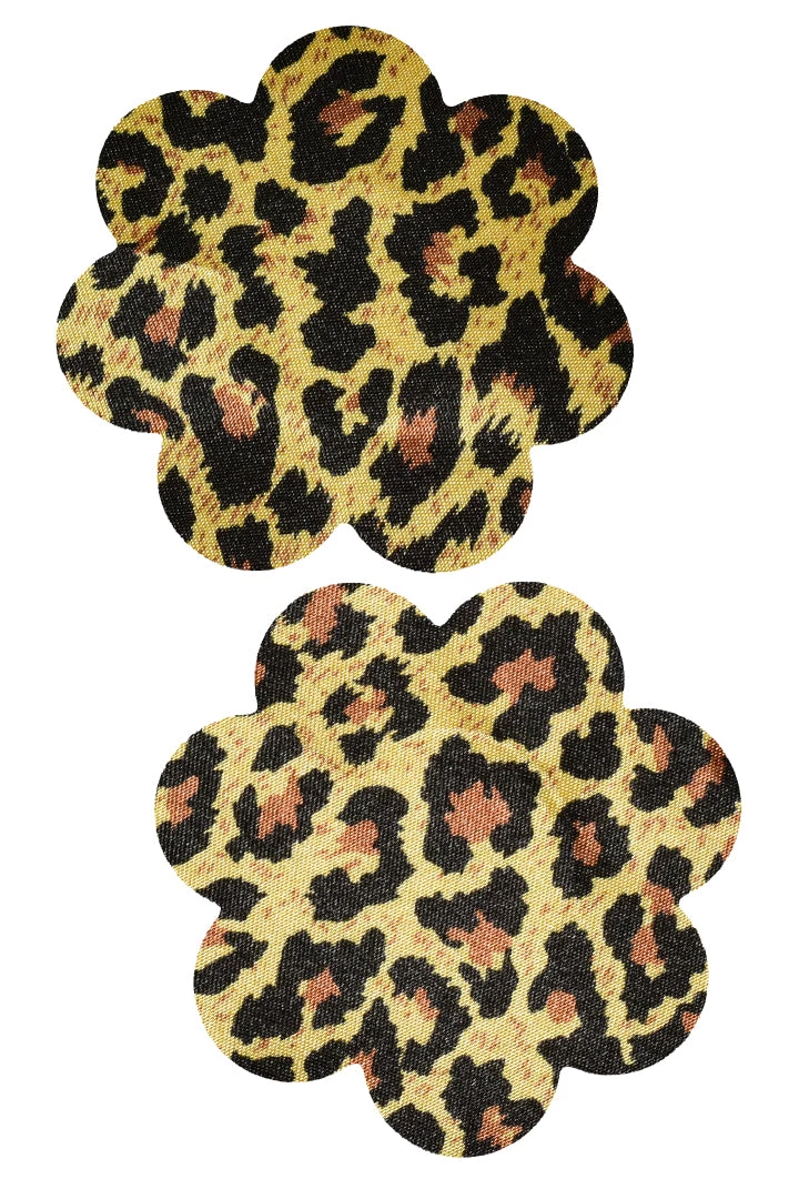 These leopard print circle petal nipple pasties. Features self adhesive tape, just peel and stick on clean, dry, oil-free skin!