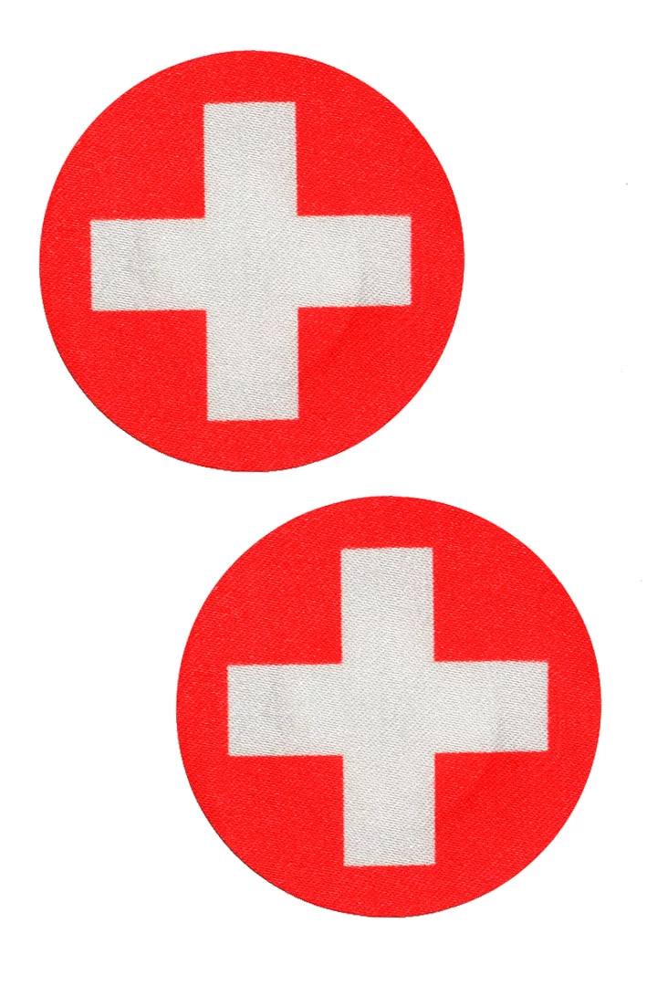 Women’s Red nurse symbol on mini dot Nipple Pasties. Feature self adhesive tape, just peel and stick on clean, dry, oil-free skin.