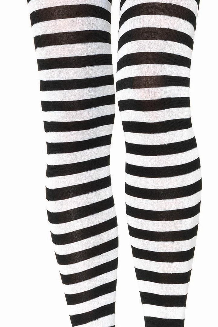Make a statement with your legs featuring these Black & White Striped Pantyhose with opaque nylon stretch fabric and pantyhose with feet.