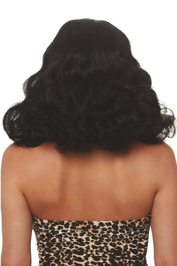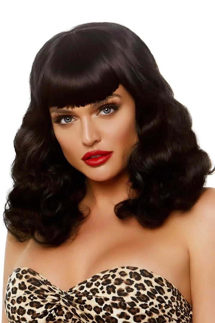 Pin-up inspired, this 16″ Retro Curly Bob Wig includes soft synthetic curls that touch the shoulders with cute blunt cut bangs.