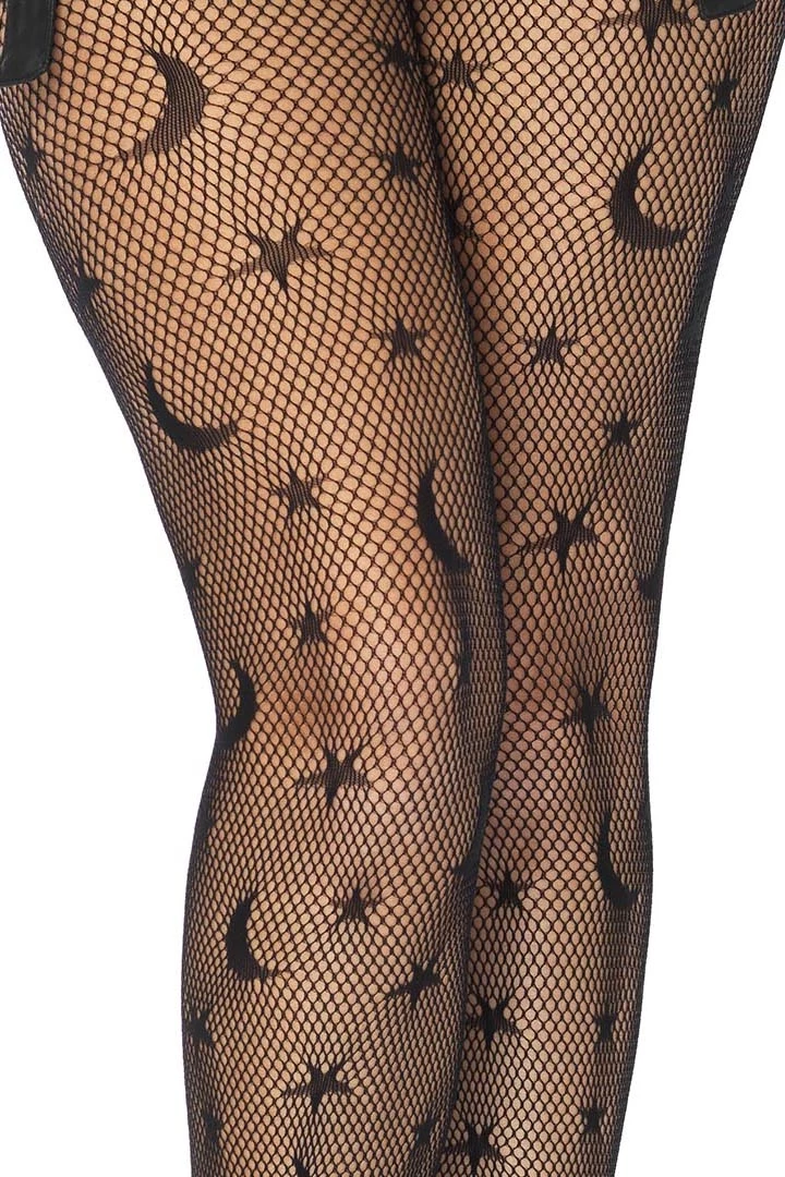 Gaze at the stars in these Celestial Net Pantyhose Tights that feature black knit tights that include celestial pattern.