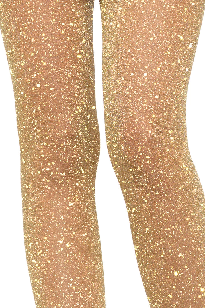 Add a touch of sparkle with these Gold Lurex Shimmer Tights that feature opaque spandex pantyhose tights with metallic shimmer sparkle. Features a soft stretch waistband and pantyhose with feet.