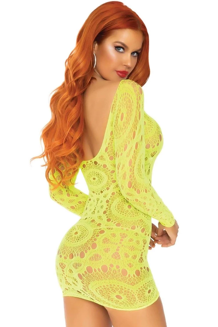 Create electrifying looks in this Neon Yellow Crochet Mini Dress that features a sheer bright yellow mini dress with hippie cutout pattern. This soft material includes plenty of stretch to hug those curves and offer flexibility for your wild intentions.