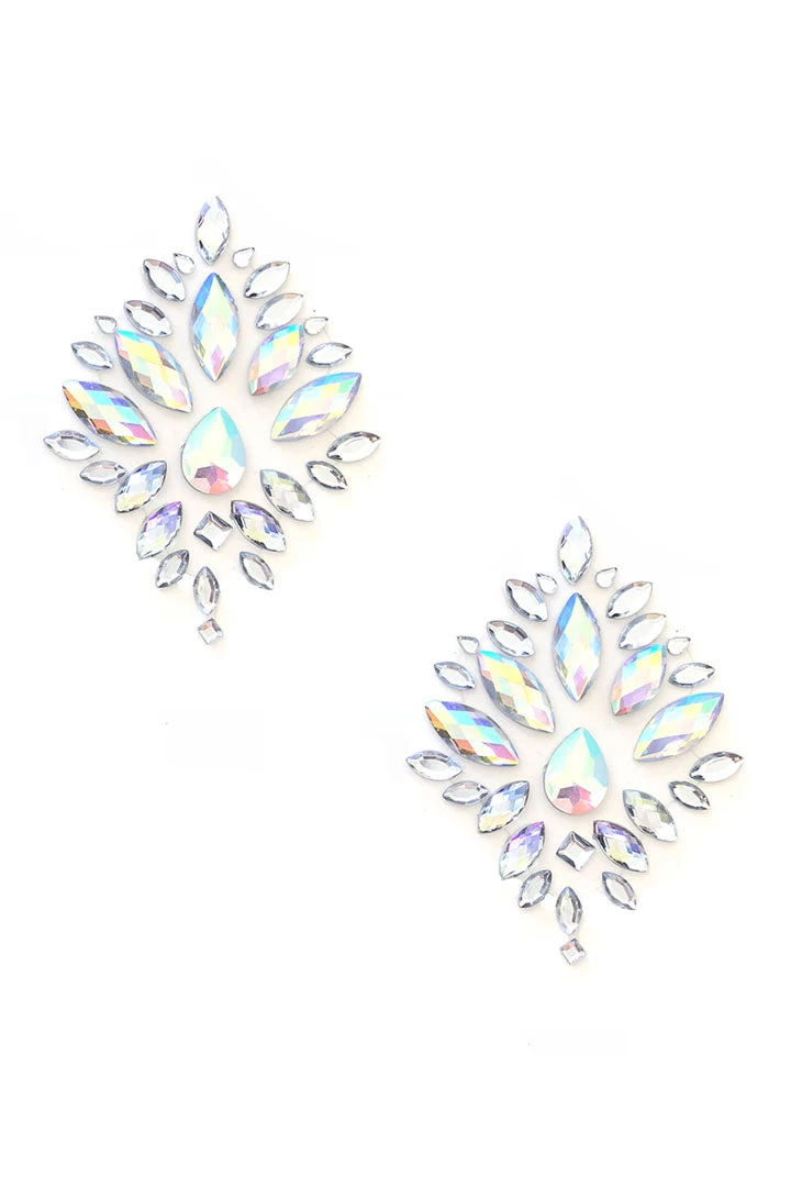 Similar to nipple pasties, these Crystal Ice Queen Boob Jewels feature stick on rhinestone nipple pasties! While it may be your inclination to tell people “my eyes are up here” you’ll realize that these hypnotic boob jewels are meant to make your girls shine. It’s recommended to apply over nude petal pasties for a clean and seamless application. Then, peel the all-in-one crystals from their backing and apply over the nude pasties. Apply on clean, oil-free skin!
