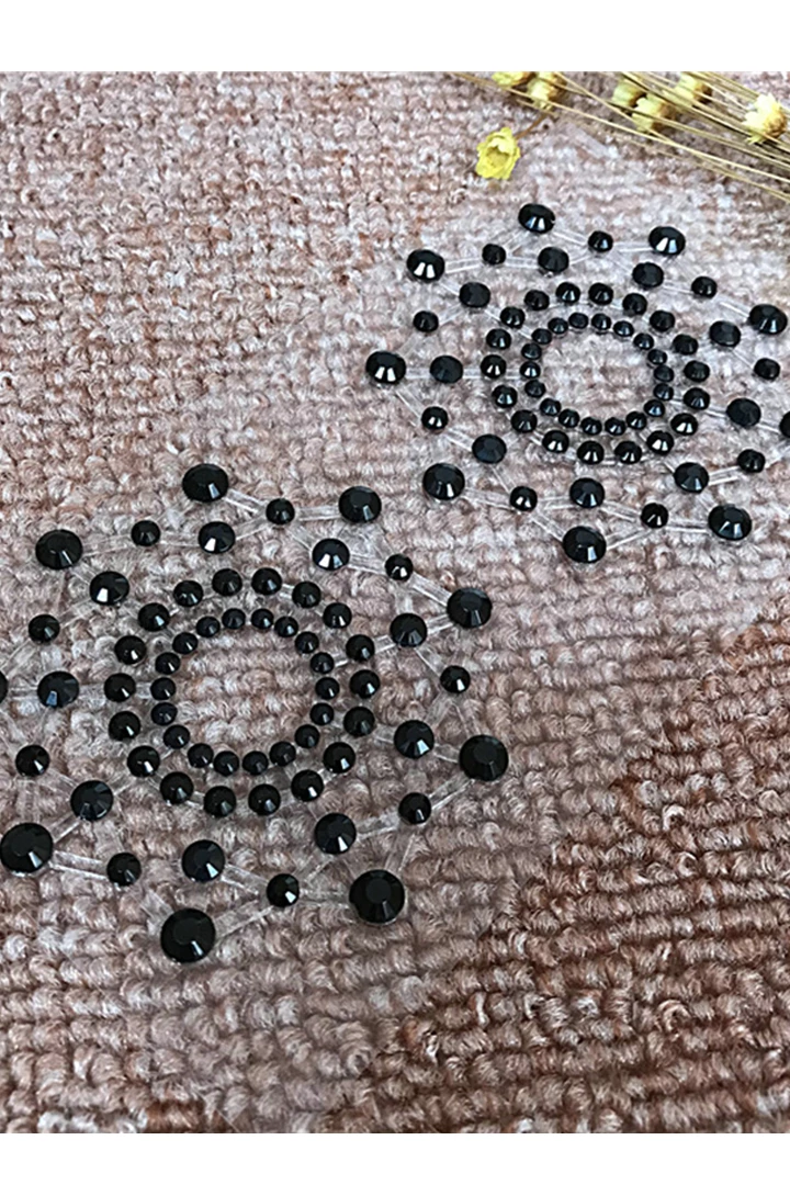 Create a burlesque appeal with these Black Acrylic Diamonds Nipple Pasties that create a flirty and sexy sunburst design! Features sticky clear adhesive that forms to skin and a convenient center hole to let your nipple breathe.