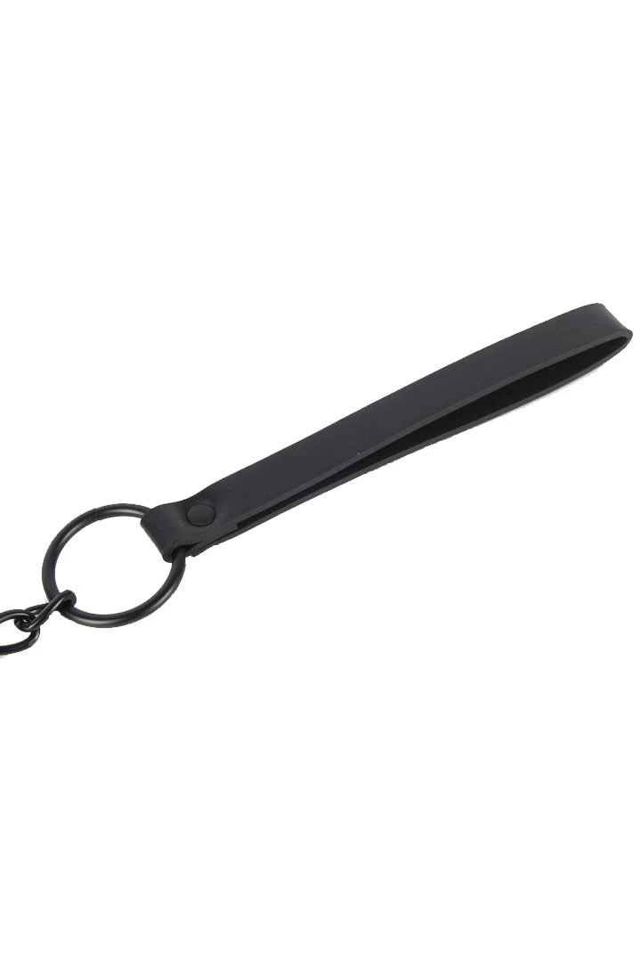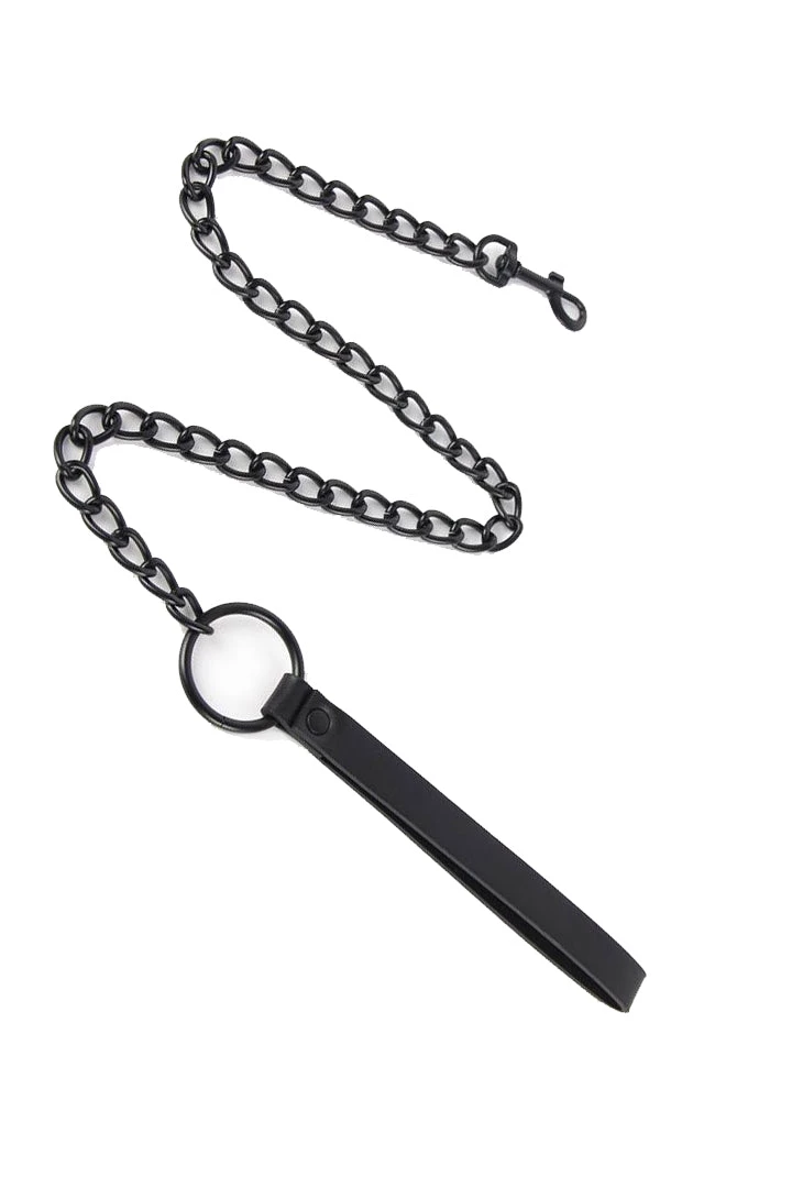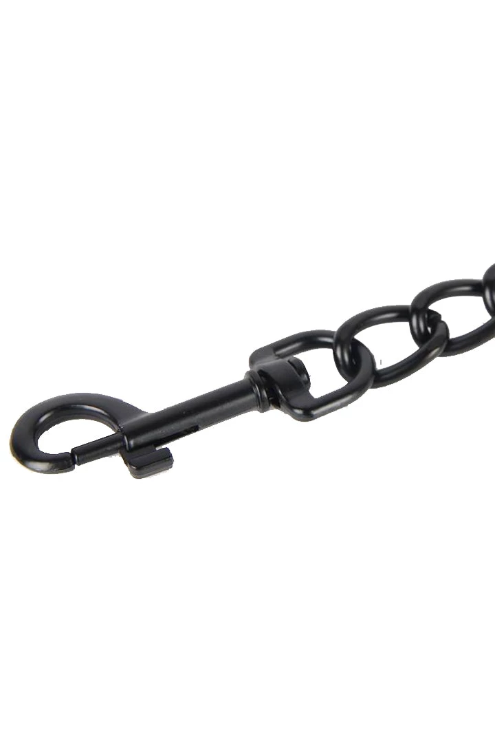 Train your kitten with this Black Metal Chain Bondage Leash that features a long chain, metal clasp, and faux leather loop wrist. Use this leash to attach to your own collar!