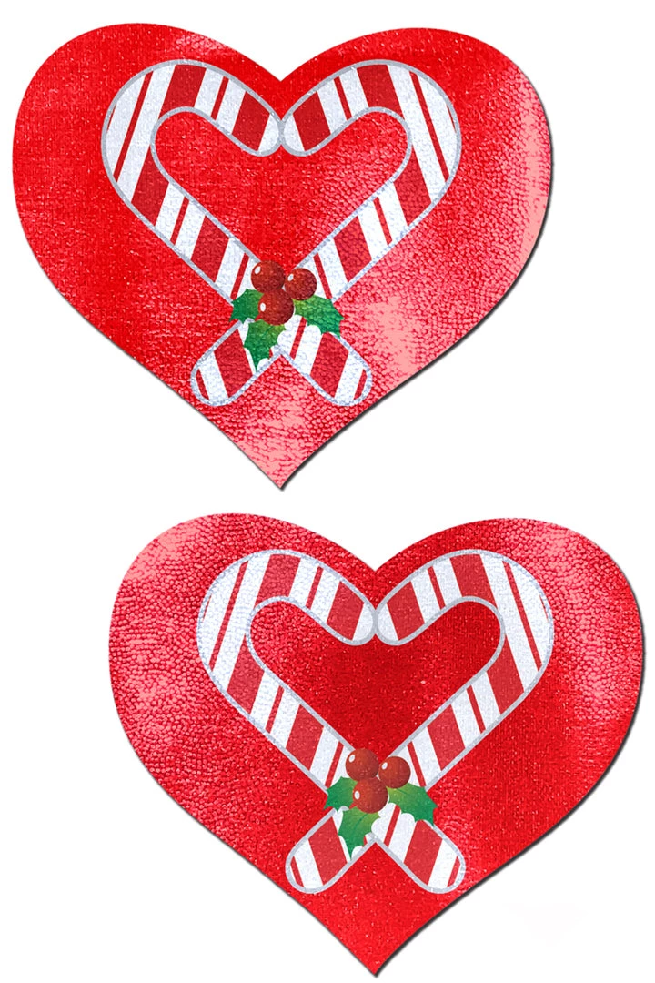 Give Kris Kringle a good lick with these Candy Cane Heart Nipple Pasties that feature form fitting material that forms to curves and resists wrinkling over hardening nipples. Just peel-and-stick on clean, dry skin.