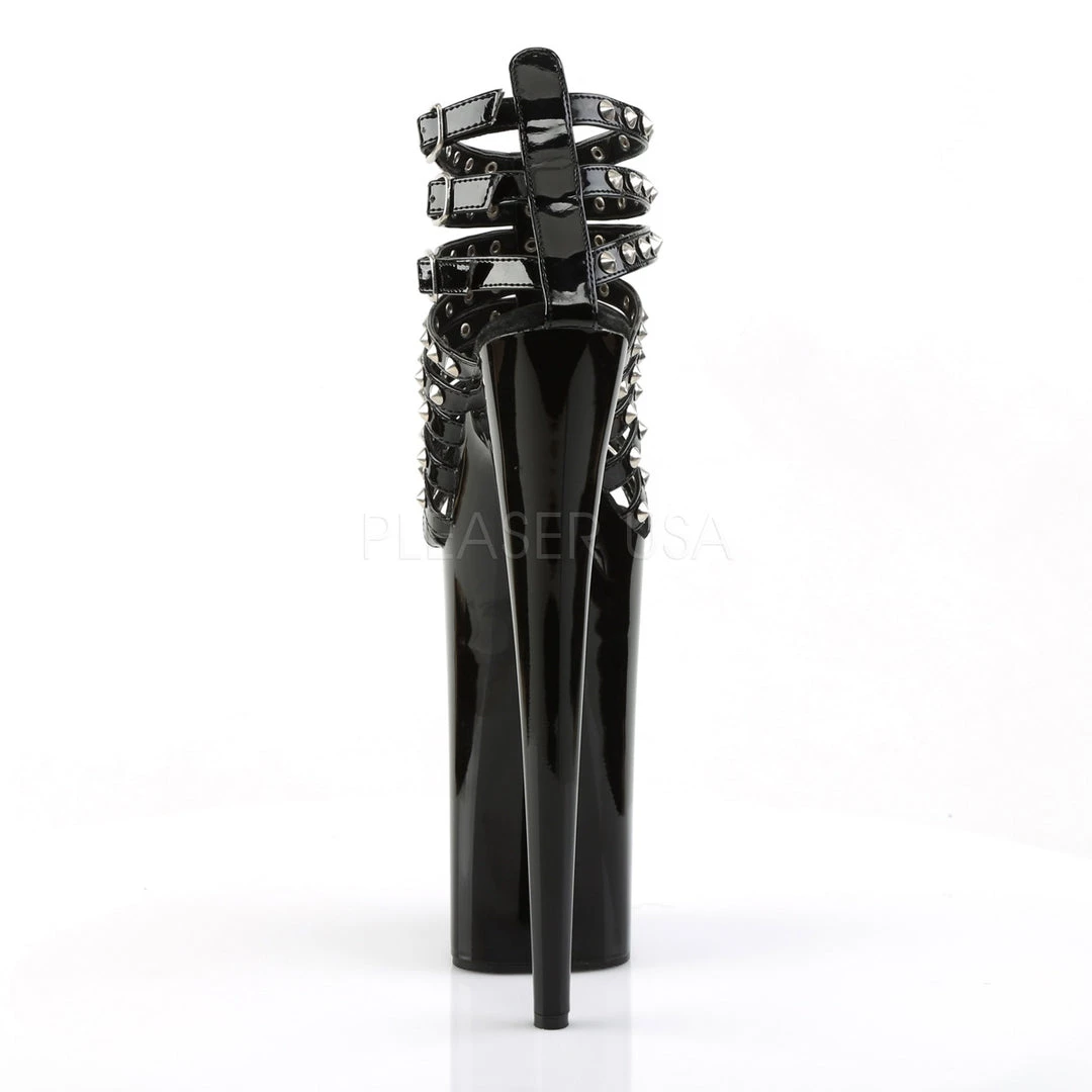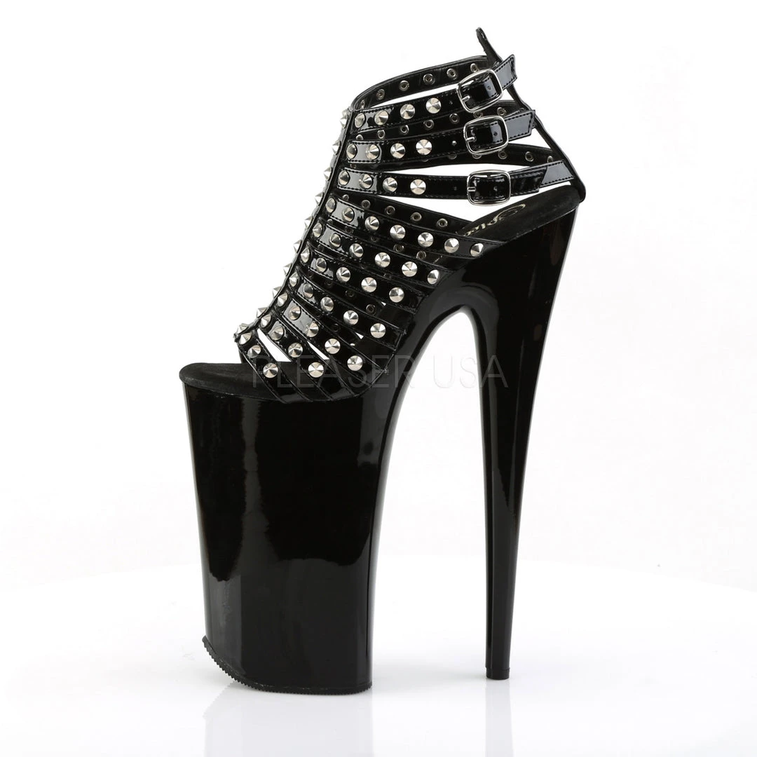 Fun and stylish, you’ll love these 10 inch high heel black strappy sandal platform shoes with 6.3″ platform.