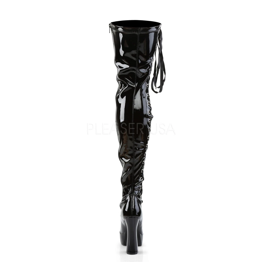 Women’s black 5 inch heel thigh high boots with 1.5″ platform.
