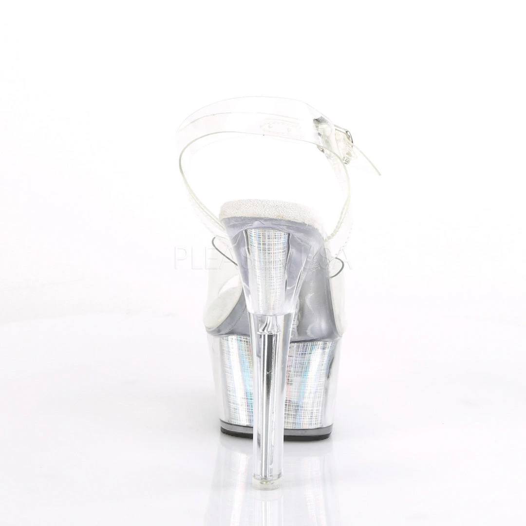 Women’s clear and silver ankle strap LED illuminated stripper shoes featuring a 6″ heel and 1.3″ Platform, to help promote the appearance of longer firm legs and a perky booty.
