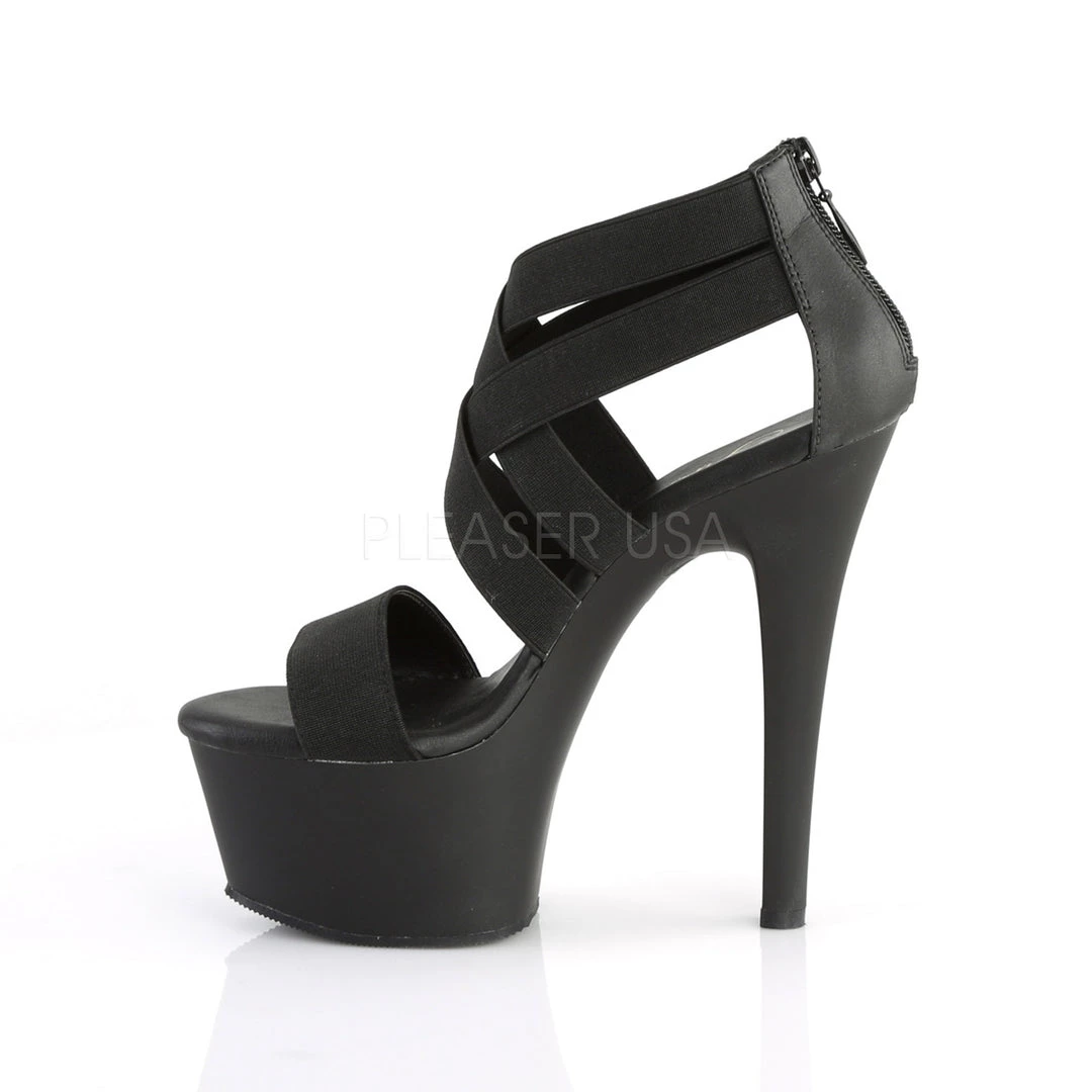 - 6″ Heel, 2 1/4″ Platform Criss Cross Sandal, Back Zip